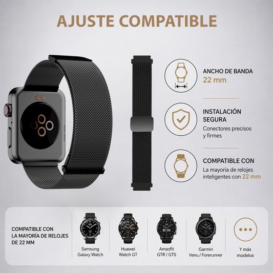 MiracoRun 22mm Smartwatch Straps 2 in 1 Milanese and Braided Elastic Compatible Universal Connector – Black